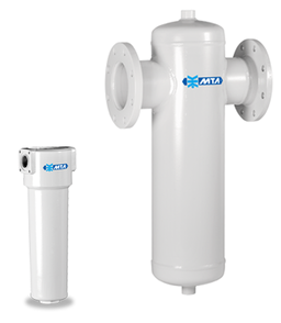 Сепаратор центробежного типа МТА Puresep AS 215 - способны удалить большее количество жидкого конденсата из системы сжатого воздуха, что помогает избежать образования ржавчины и отложений в системе и трубопроводах. Сепараторы серии MS выполнены из корпуса с фланцем из углеродистой стали, в корпусе содержится центрифужный элемент с очень высокой номинальной эффективностью сепарации и очень низкими потерями нагрузки. Сепараторы серии AS выполнены из алюминиевого корпуса, в котором содержится центробежный элемент с очень высокой номинальной эффективностью сепарации (более 98%) и очень низким уровнем потерь нагрузки. Производительность 1300 м3/час.