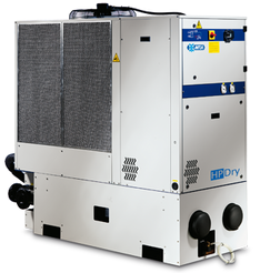 Используется водный охладитель с холодильным циклом и блока обменников с пучком труб. Охладитель производит охлажденную воду, которая используется для охлаждения сжатого воздуха. Блок обменников состоит из двух колонн из пучков (обменник воздух/воздух и воздух/вода) и отделитель конденсата с двойным горизонтальным туманоуловителем. Холодильный компрессор управляется электронной станцией, которая контролируют температуру воды на выходе из машины, для поддержания в определенных пределах.
